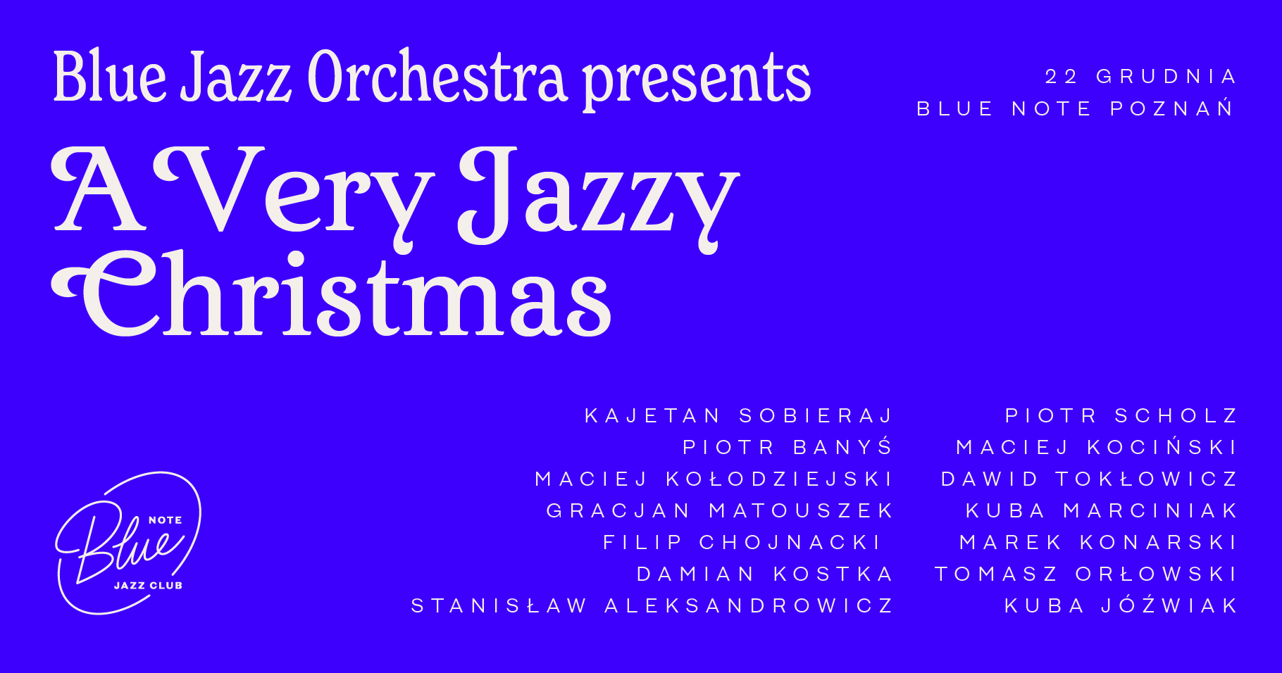 Zapraszamy na wyjątkowy wieczór pełen grudniowego czaru z Blue Jazz Orchestra! Podczas koncertu wybrzmią najbardziej znane świąteczne piosenki w big-bandowych aranżacjach – nie zabraknie „Santa Claude is Coming to Town”, „Jingle Bells” czy „Have yourself a Merry Little Christmas”. 22 grudnia, tuż przed Bożym Narodzeniem, zapraszamy do Blue Note, aby poczuć świąteczny nastrój i usłyszeć nowy zespół na jazzowej mapie Poznania. Wystąpią czołowi muzycy poznańskiej sceny, którzy tworzą debiutującą Blue Jazz Orchestra. To koncert, który ogrzeje Was świątecznym ciepłem!